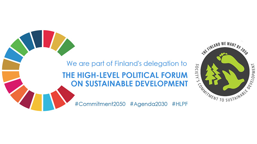 Måndagen den 10 juli inleds FN:s forum om hållbar utveckling (HLPF), där Finland berättar om framstegen i fråga om det samhälleliga åtagandet för hållbar utveckling, som är ett viktigt verktyg för genomförandet av handlingsprogrammet Agenda 2030, och om det nya systemet för uppföljning av hållbar utveckling. Finlands prioriteringar är att hela samhället deltar i arbetet för att främja hållbar utveckling och att kvinnors och flickors ställning förbättras.