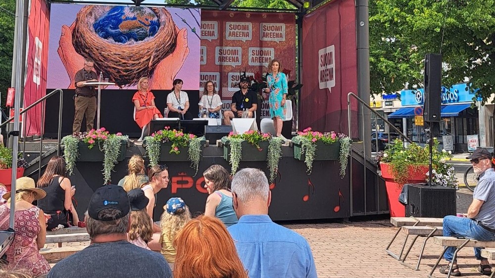 - Warner musicin Ville Ahtiainen kertoi haluavansa haastaa koko viihdealan kenttää ajattelemaan toimintaa kestävän kehityksen näkökulmasta. Viihdealaan liittyy paljon erilaisia toimijoita, joissa voidaan ottaa huomioon kestävä kehitys. Näitä ovat esimerkiksi logistiikka, miten liikutetaan ja miten majoitetaan.