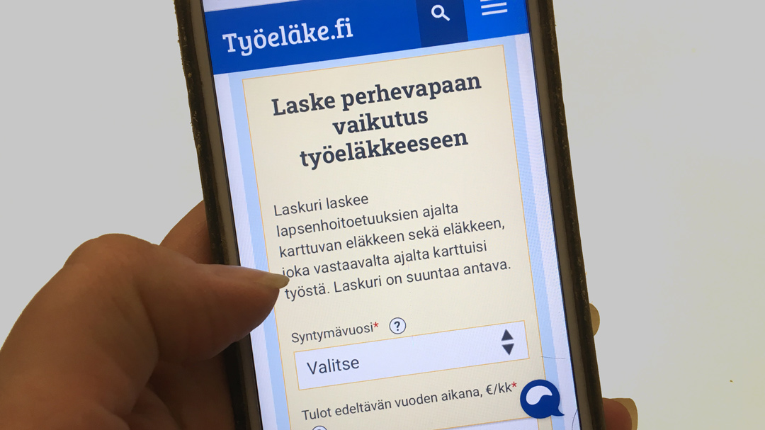 Med hjälp av en ny räknare kan man bedöma pensionseffekten av familjeledighetsperioder av olika längd och jämföra pensionstillväxten med den pension som skulle tjänas in av arbete under motsvarande tid. Räknaren har utarbetats av Pensionsskyddscentralen och ingår i ett projekt om pensionsskillnader mellan kvinnor och män. På FPA:s webbsidor för barnfamiljer finns också en länk till räknaren.