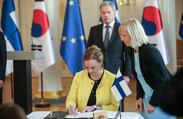 Korean tasavallan presidentti Jae-inin vierailun yhteydessä elinkeinoministeri Katri Kulmuni on tänään allekirjoittanut Suomen puolesta yhteisymmärryspöytäkirjan yhteistyön vahvistamisesta energia-alalla Korean tasavallan kauppa-, teollisuus- ja energiaministeriön ja Suomen tasavallan työ- ja elinkeinoministeriön välillä. Samassa tilaisuudessa ministeri Kulmuni allekirjoitti myös yhteisymmärryspöytäkirjan Suomen tasavallan työ- ja elinkeinoministeriön ja Korean tasavallan pk- ja startup -yritysten ministeriön välillä.
